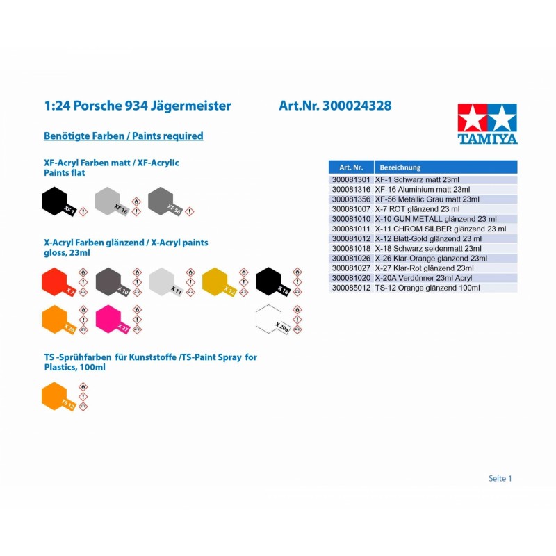 Etichete: Tamiya 1:24 Porsche 934 Jägermeister, macheta de asamblat, 300024328 tamiya