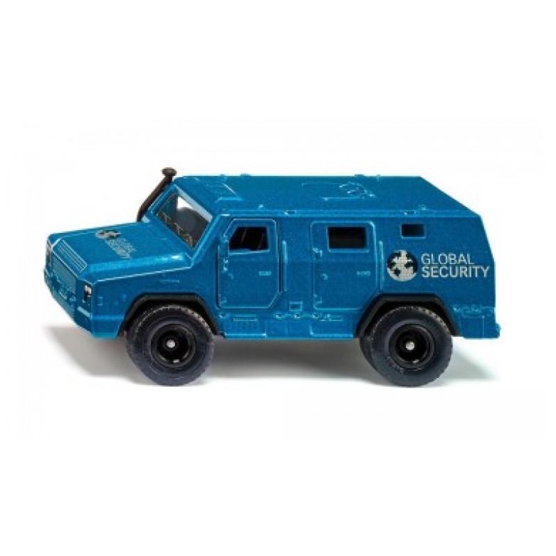 Macheta " Van Transport Valori " de la siku , nu este o jucarie simpla ci si o macheta din metal foarte realistic, robust cu detaliile aferente fratelui sau original. Usile fata si cea din spate pot fi deschise. Vehiculul poate fi decorat suplimentar si cu autocolantele incluse, de exemplu cu informatiile „Transport numerar și valori” și „Monitorizat prin GPS” în diferite limbi: de exemplu Germana, Engleza, Italiana. Pentru distractie deosebit de realista, setul include si patru lingouri mici care imita aurul si doua foi de carton cu elemente de joc suplimentare. Aceste elemente se desprind din rama cartonata si prezinta diverse încarcaturi, cum ar fi saci de bani, casete de bani, tablouri sau certificate. Elementele preimprimate pot fi desprinse cu usurinta din foile de carton si depozitate in transportor. Un amanunt creativ: Colile de carton sunt in dublu exemplar - o coala de carton este deja imprimata, a doua arata doar contururile, astfel incat elementele individuale sa poata fi colorate in mod creativ de catre copii. Recomandat copiilor peste 3 ani. Dimensiuni masinuta: 12 x 5 x 5,5 cm. Scara 1.50